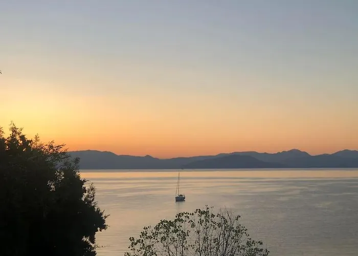 Azzuro Sea View公寓是一套海滨的公寓,位于Achílleion,步行25分钟就可以到阿喀琉斯宫. 旅馆配备阳台 和气候控制,设有大厨房.